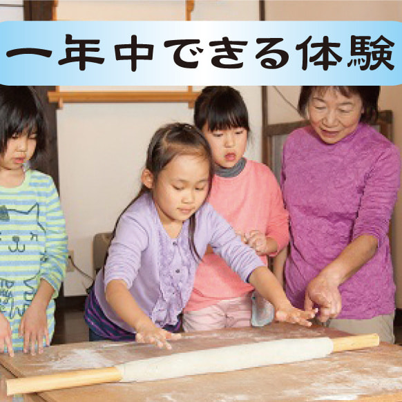 そば打ち・あんぼ作り・ちまき作り・一輪挿し・抹茶体験などなど一年中楽しめる体験メニューです。雨が降っても雪が降っても楽しめるので天気予報とにらめっこしなくてOKですよ。